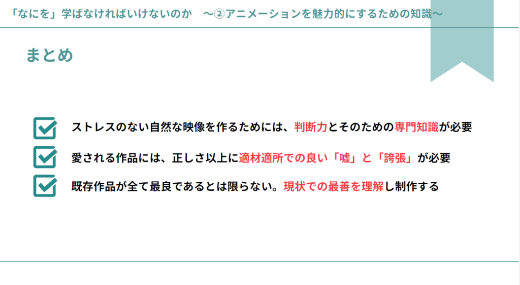 アニメーションでは、「正しい動き」と「魅力的な動き」は必ずしもイコールではありません。そこに“嘘”や“誇張”が入ることで、作品の魅力がグッとあがるんです。