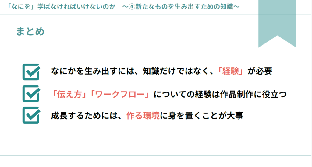 実は、これって「AI時代」とは関係なく、「これまでも」ずっと求められてきた知識です。道具や工程が変わっても、作品を動かし、表現を生み出すうえで大切にすべき本質は変わりません。