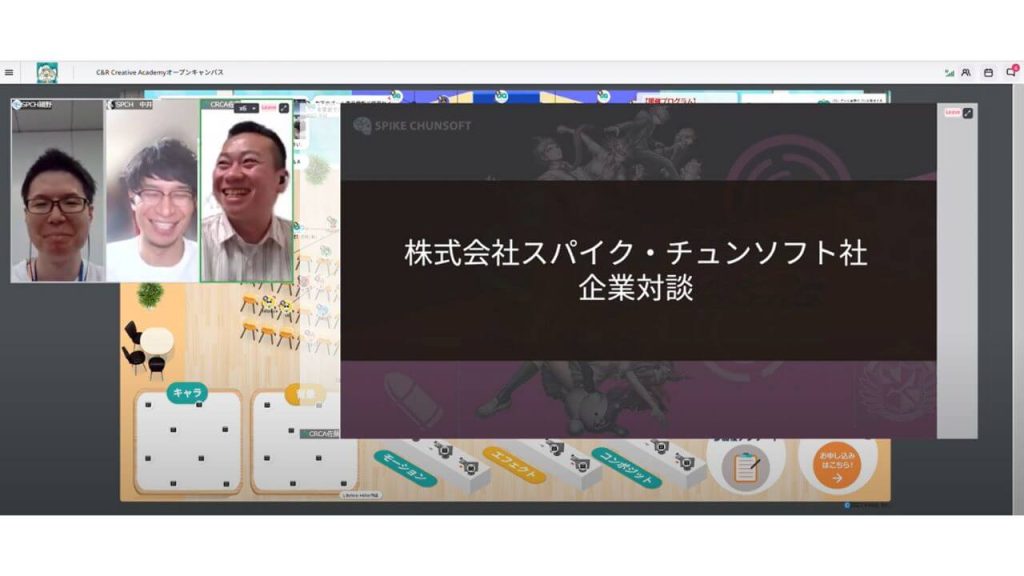 2023年5月19日(金)に開催したオープンキャンパスでは、株式会社スパイク・チュンソフトとの企業対談を開催しました。