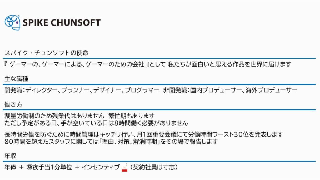 うちのアカデミー卒業生が、スパイク・チュンソフトさんはかなり働きやすいと言っていました。どんな働き方なのでしょうか?